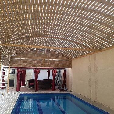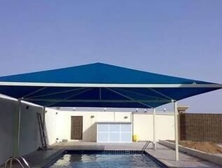 - مظلات ذات تصاميم مخصصة: يمكن إنشاء مظلات المسابح بأشكال مبتكرة ومخصصة تتناسب مع رؤية المالك. يمكنك تحديد الألوان والصيغ والمواد والتصاميم الزخرفية التي تتماشى مع ذوقك وتنسجم مع تصميم المسبح والبيئة المحيطة به.